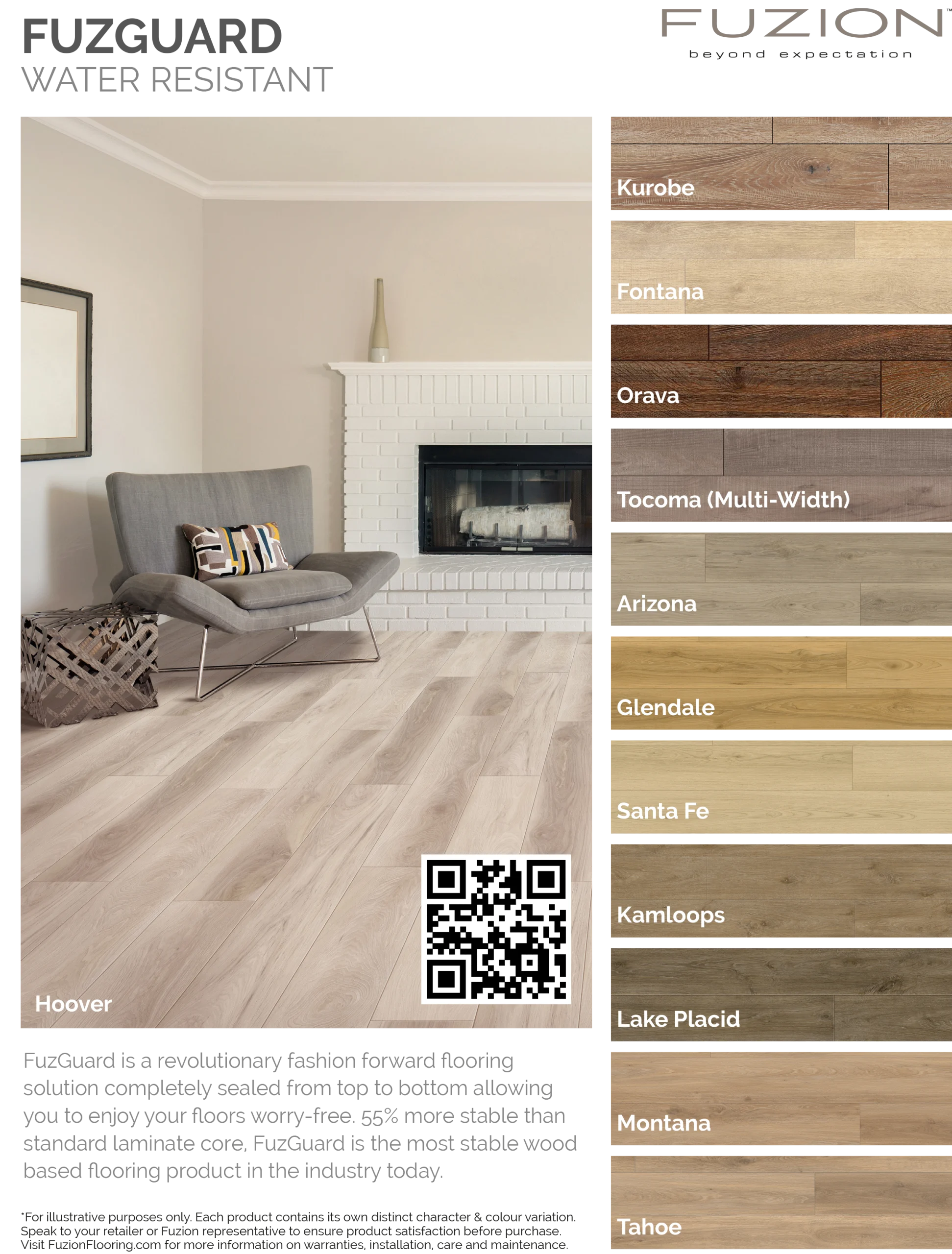 FuzGuard is a revolutionary fashion forward flooring solution completely sealed from top to bottom allowing you to enjoy your floors worry-free. 55% more stable than standard laminate core, FuzGuard is the most stable wood based flooring product in the industry today.