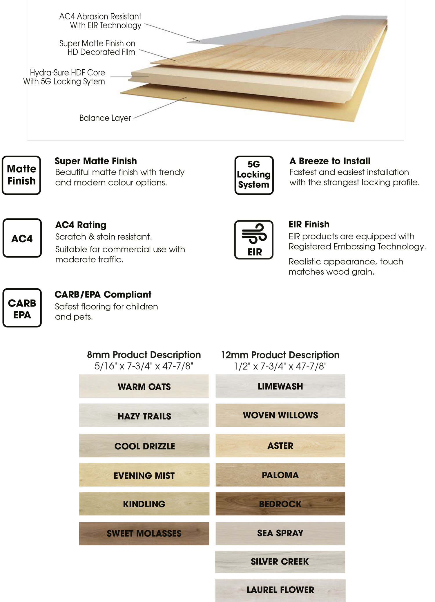 Our realistic-looking laminate collection is designed for easy living. The entire collection is FloorScore® Certified to meet emission standards and ensure indoor air quality. We offer a variety of colors to satisfy different interior needs.