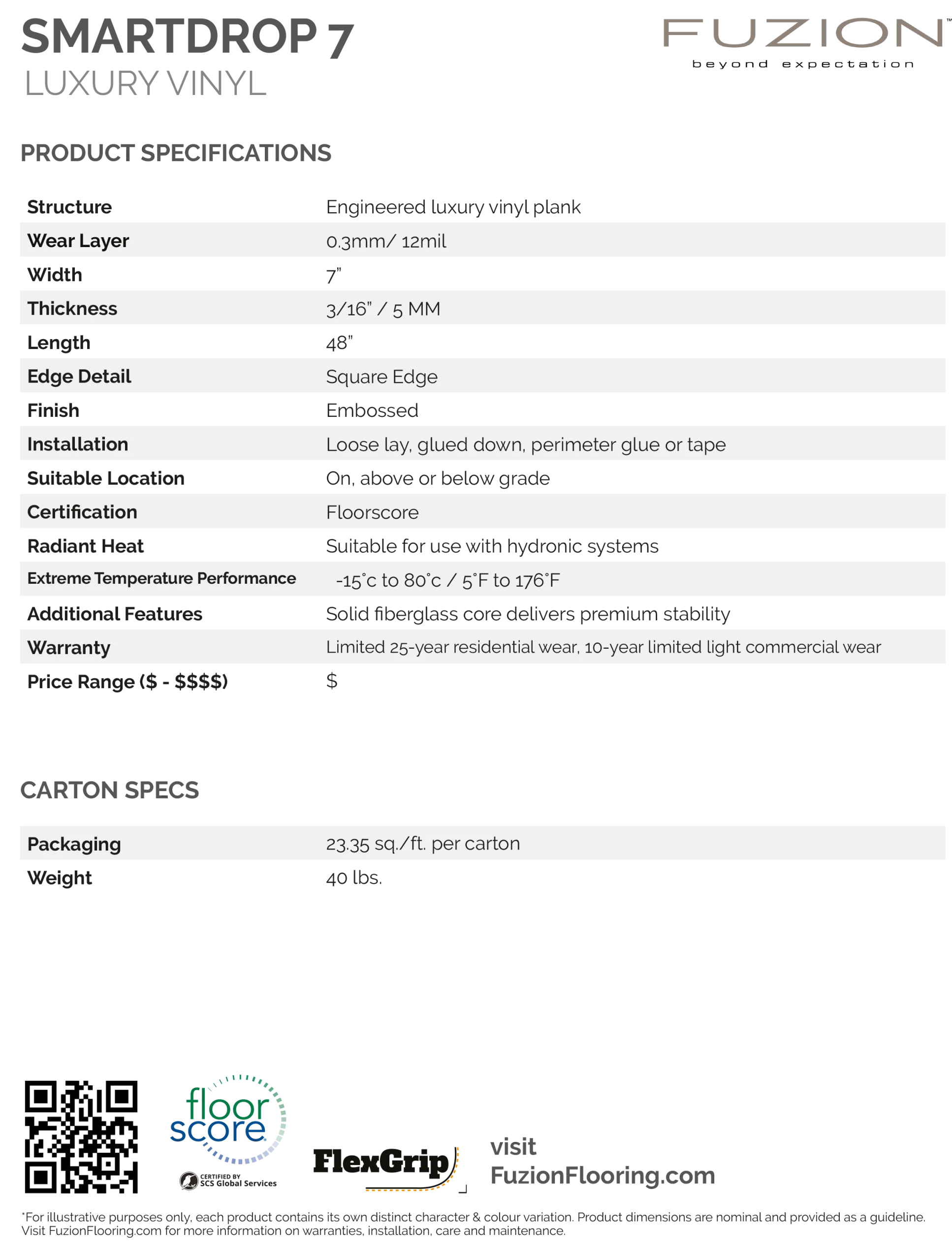 Discover the exceptional durability and timeless elegance of Fuzion’s Luxury Vinyl Flooring. Expertly engineered for long-lasting performance, it offers superior water resistance and is built to withstand high-traffic areas, making it the ideal flooring solution for both style and functionality.