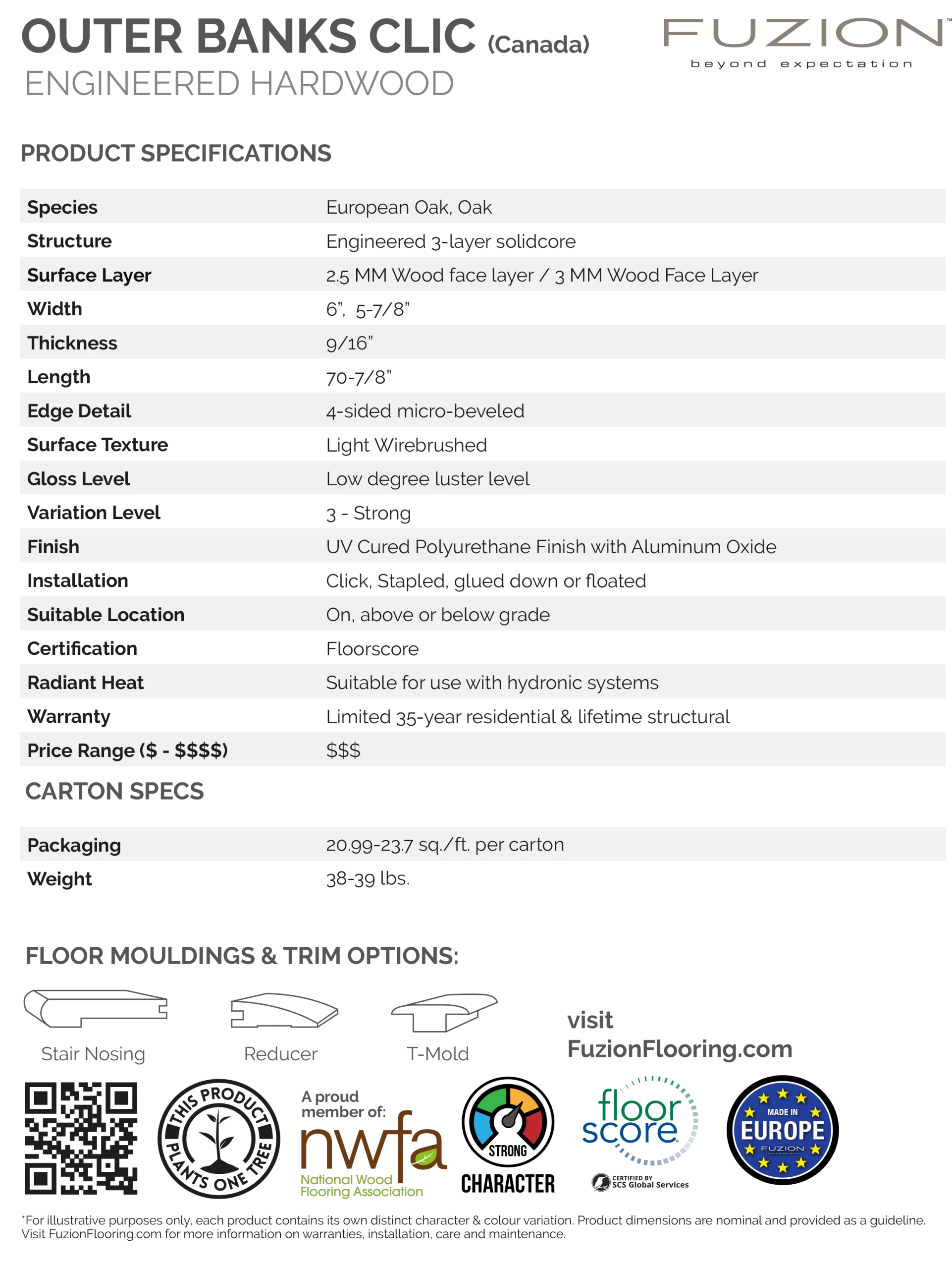 | Installation: | Stapled, Glued Down, Floated |